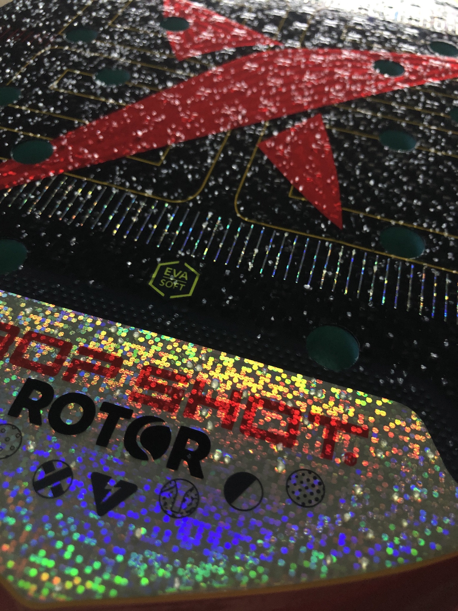 В целях снижения себестоимости при массовом производстве производители, как правило применяют не самые лучшие и дорогие материалы. При производстве нанесения «Rotor» эти материалы удаляются и заменяются на те, которые технологично создают ракетку с новыми игровыми свойствами.