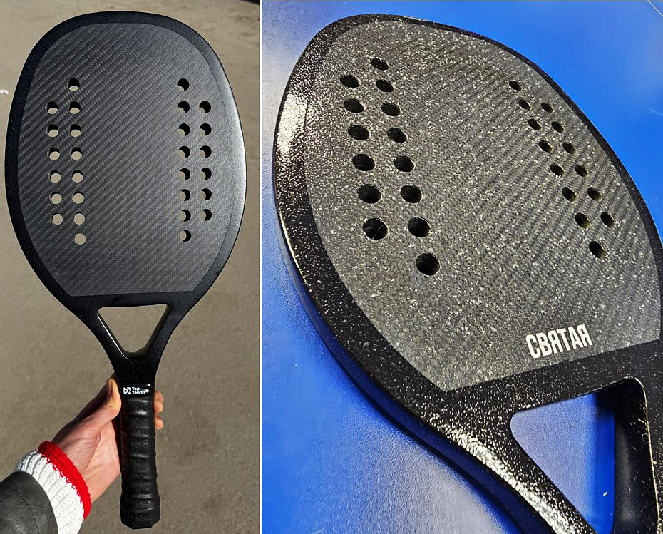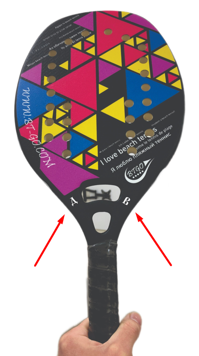 Некоторые спортсмены желают кастомизировать свою ракетку. С этой целью мы наносим индивидуальной надпись – слово или два слова. Как правило, надпись устанавливаем в нижнюю часть плоскости ракетки перед амортизирующим узлом.