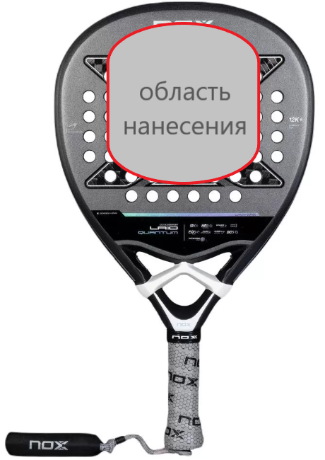 - нанесение только на игровое пятно ракетки (пятно удара или sweet spot).